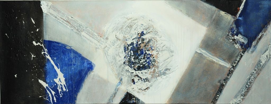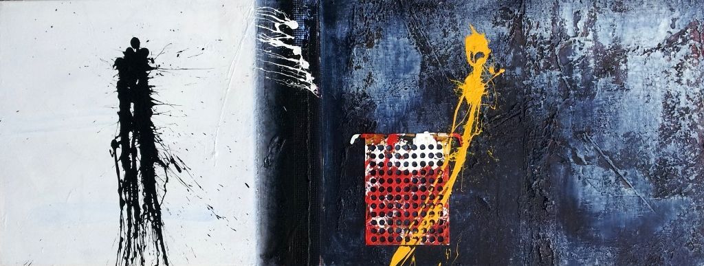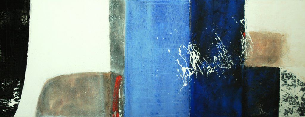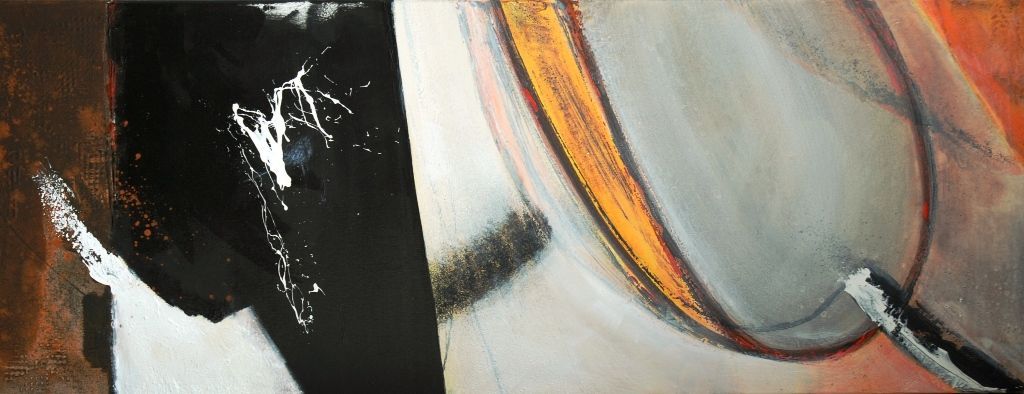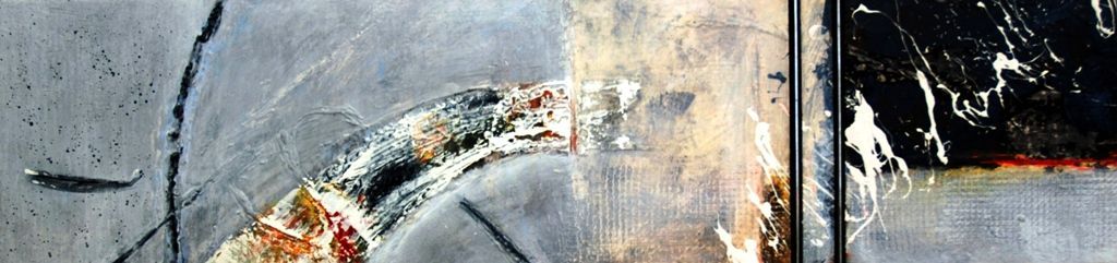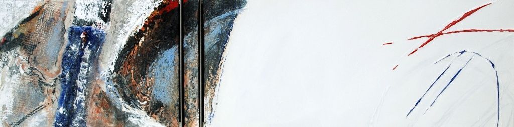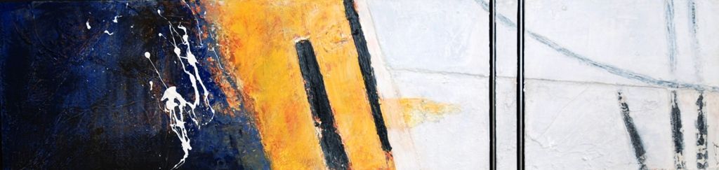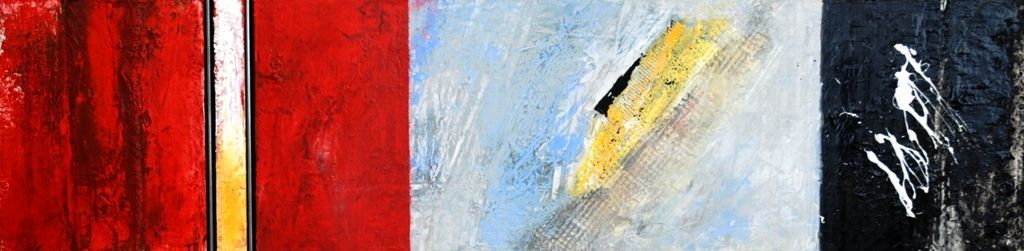 Die unten abgebildeten Bilder ohne Trennung, wurden jeweils auf einer Leinwand von 50x130x5cm gemalt. Diejenigen mit einem eingesetzten U-Profil Eisen, als Trennung/Teilung, wurden auf MDF Platen gemalt. Die kleinere Version diesere Bilder misst 20x100x4cm, die grössere 30x120x4cm. Diese Werke können sowohl in den beiden vertikalen- als auch in den beiden horizontalen- Lagen gehängt werden.