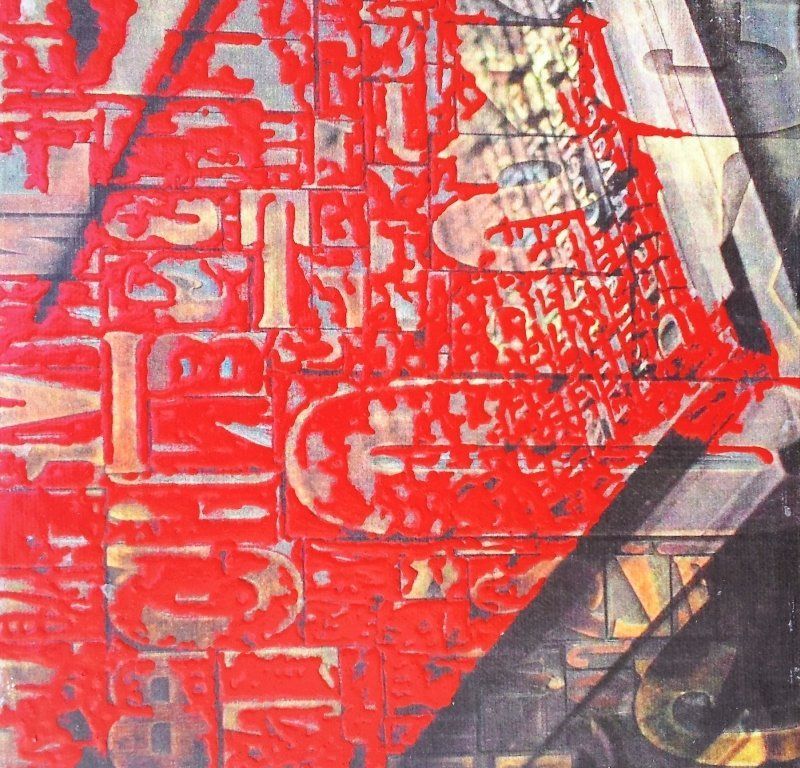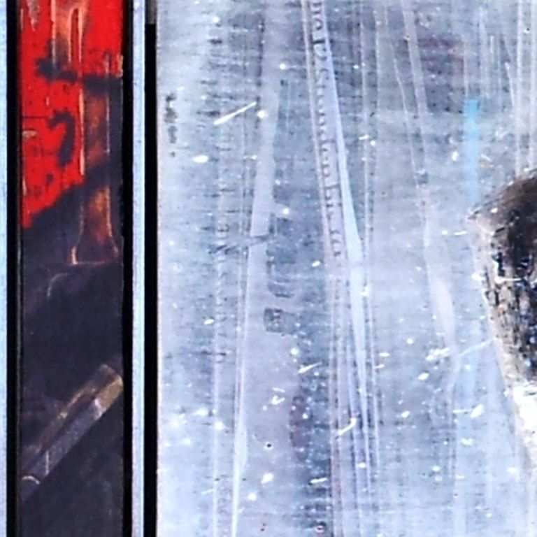 Foto Transfer- & Acryl- Collage / Zeitung, Papier, U-Eisen / Leine & MDF / 20 x 100 cm