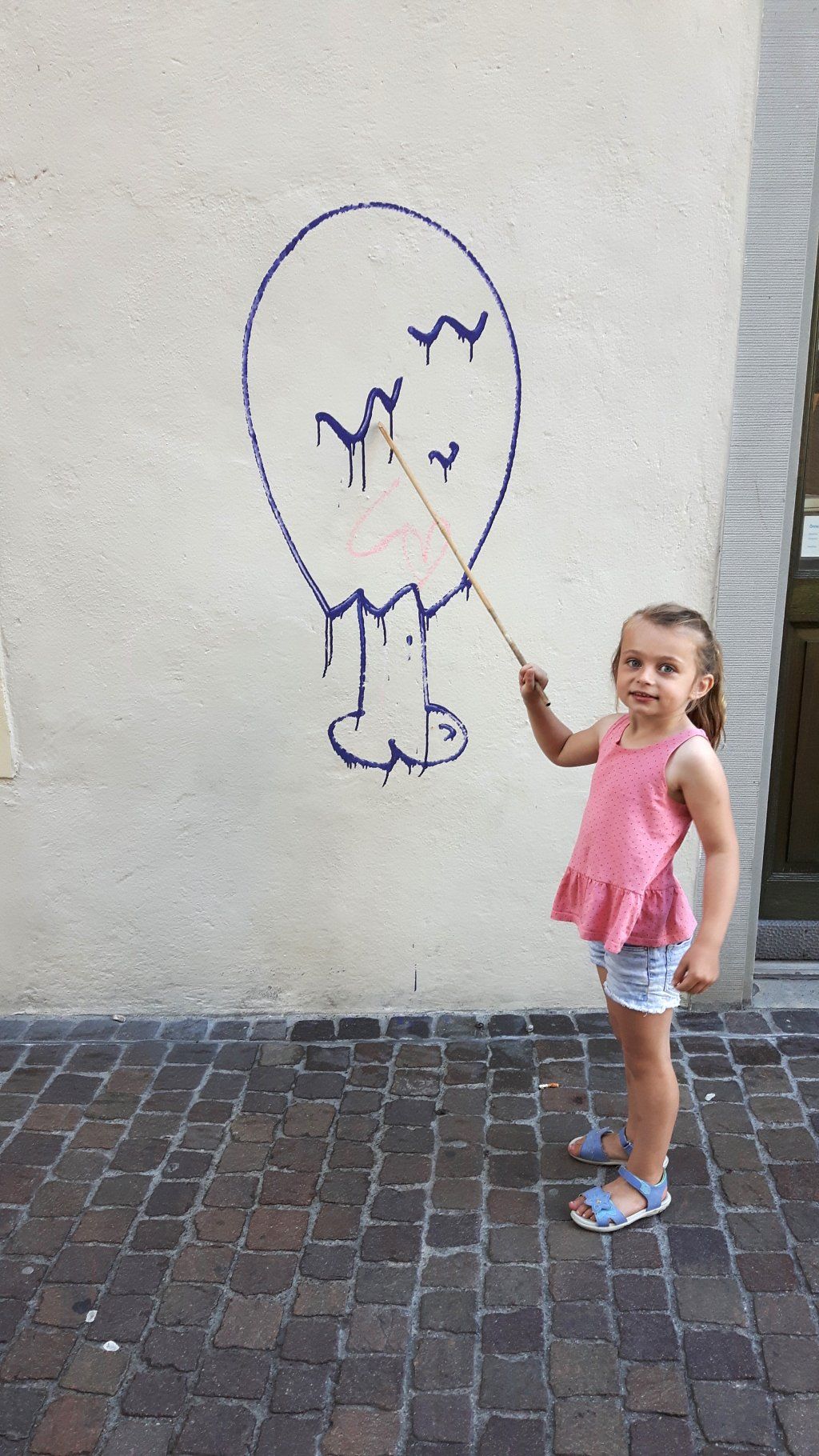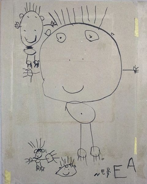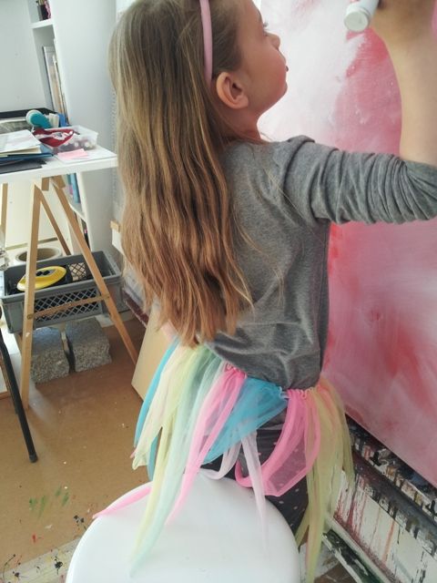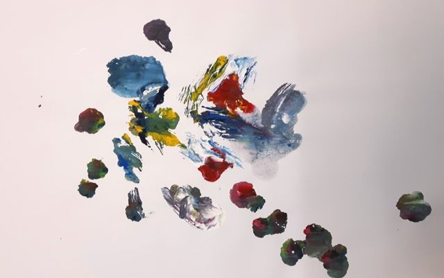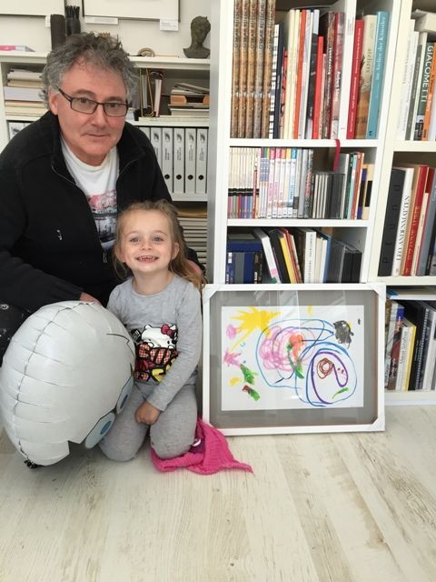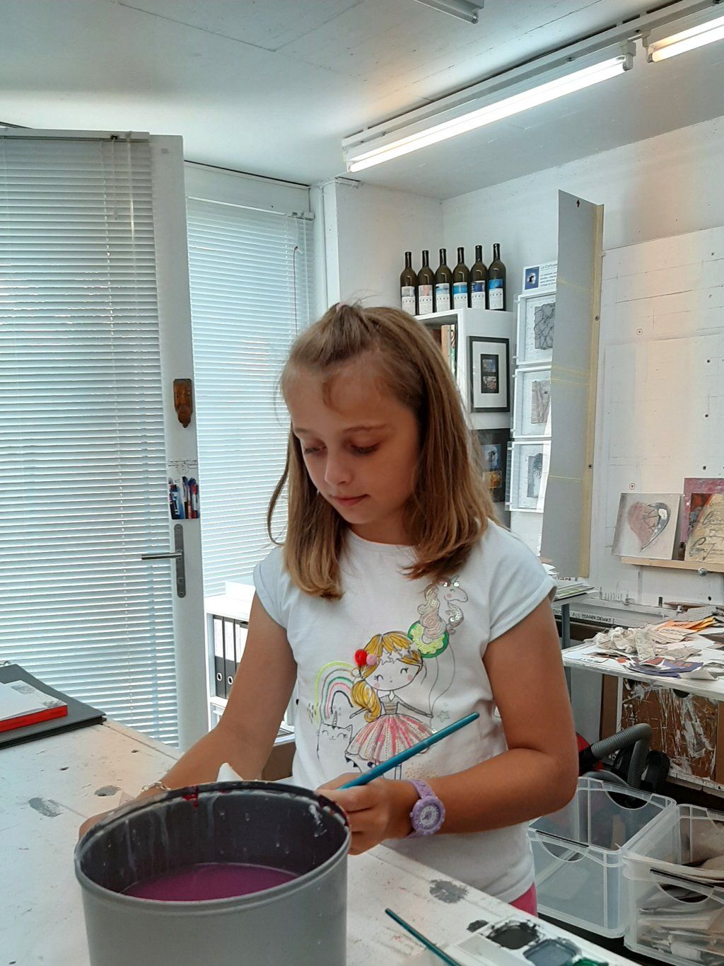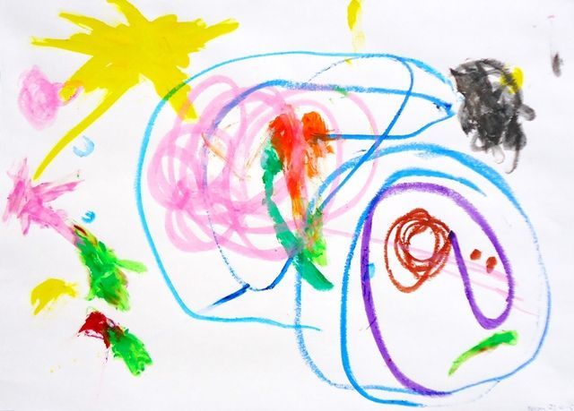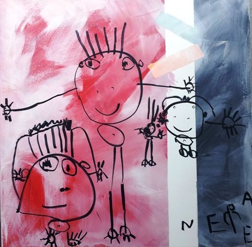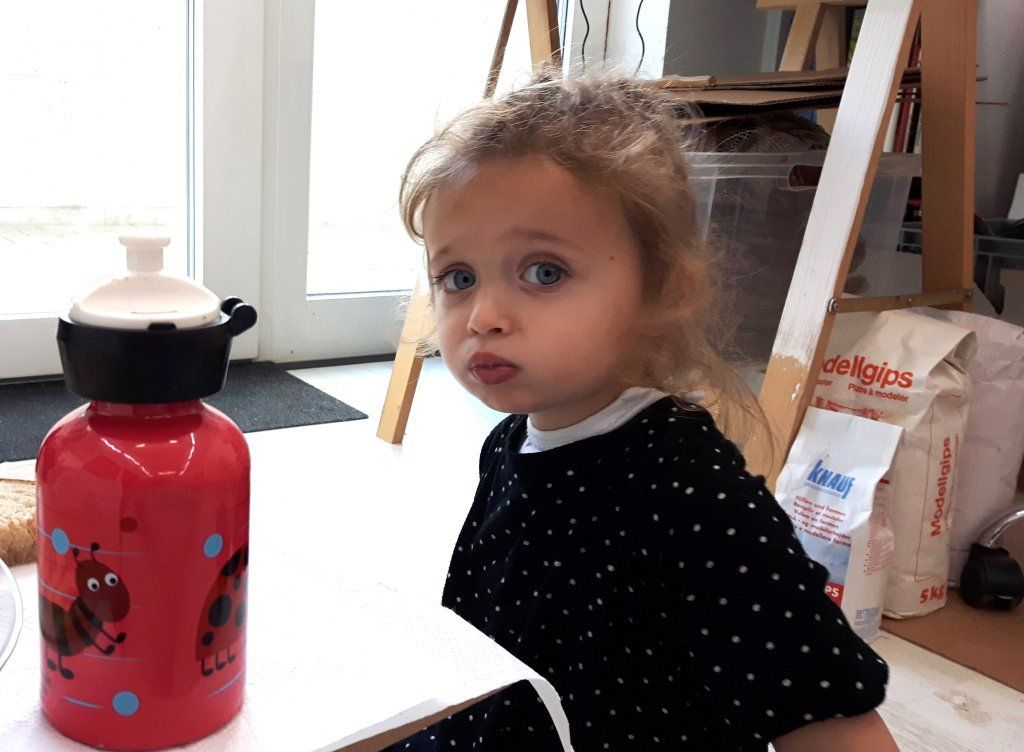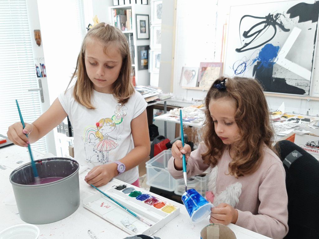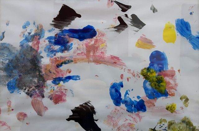 Meine beiden Enkelinen nahm ich deswegen, schon als ein Jährige, des öfters mit in mein Atelier. Dort stand Ihnen sehr viel Platz zur Verfügung und Sie konnten dort, ohne Angst etwas zu verkleckern oder zu vermalen, aus Lust und Laune, schmieren, pinseln, spachteln, kritzeln, tupfen und kleben. Im Atelier Umfeld konnten Sie somit Ihrer Kreativität freien lauf lassen und auf spielerische art uns ihre Bildsprache vermitteln.