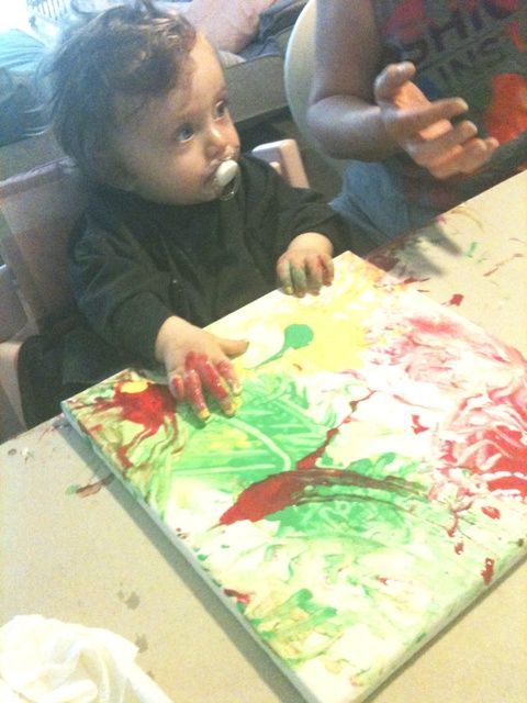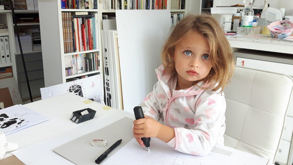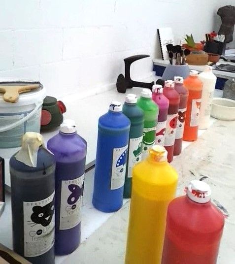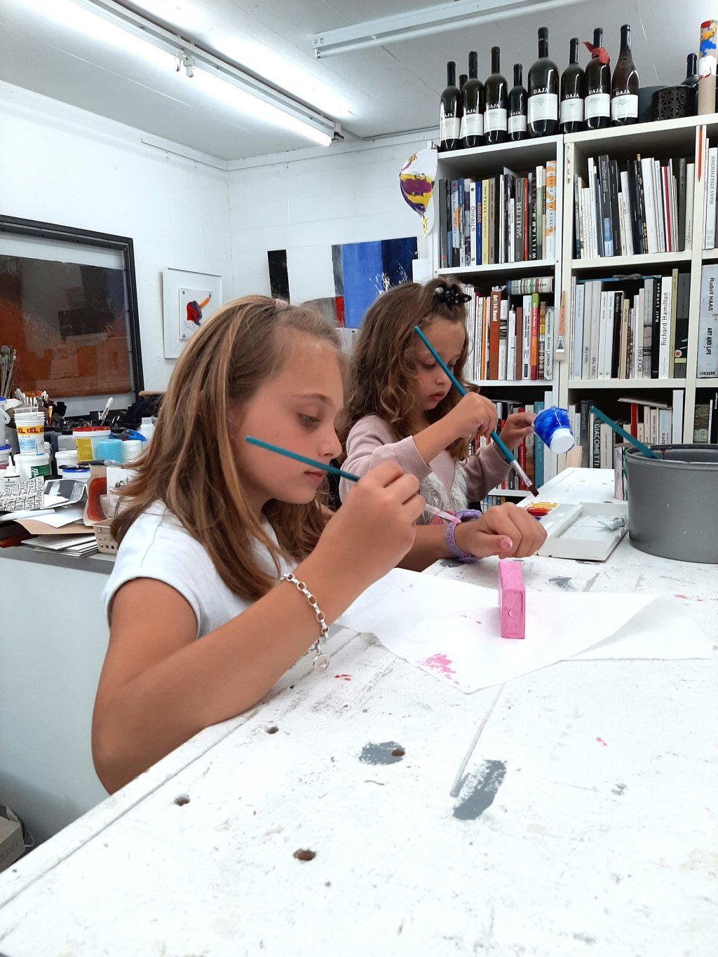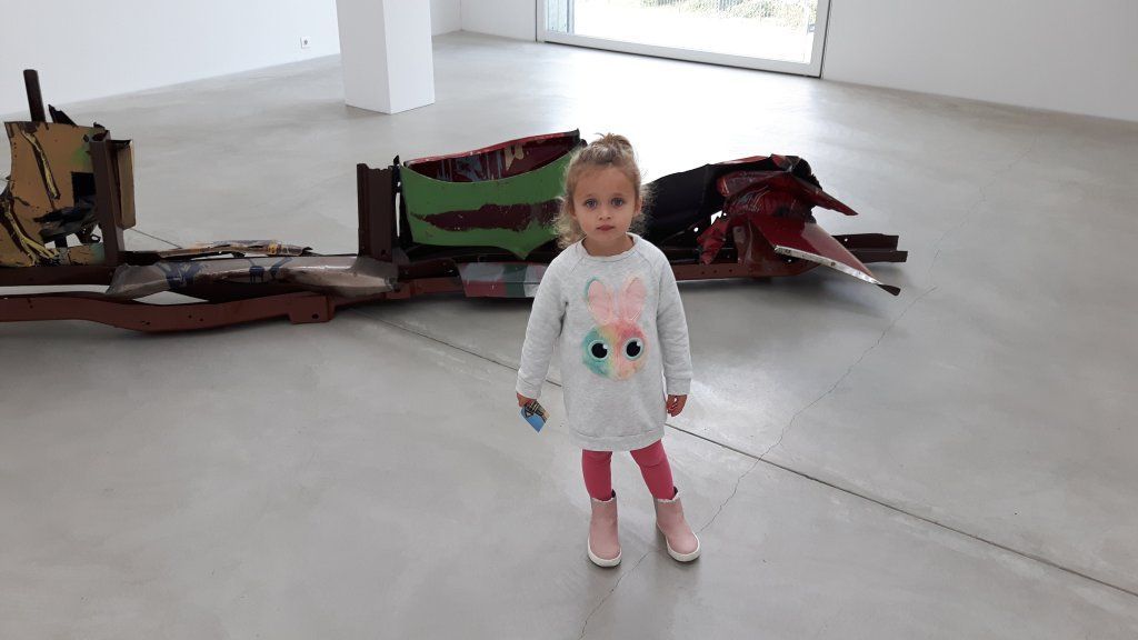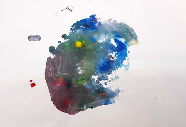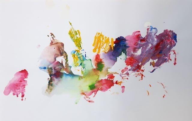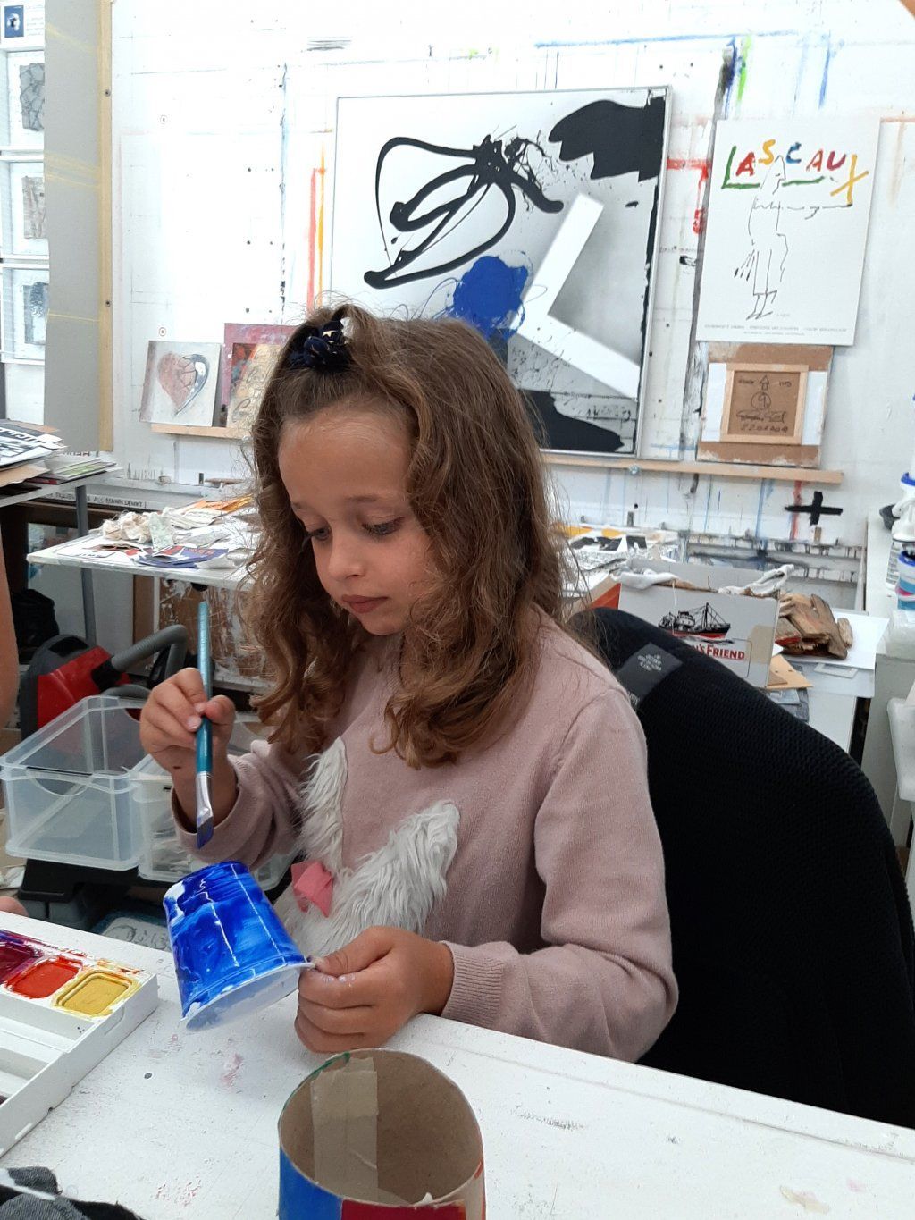 Meine beiden Enkelinen nahm ich deswegen, schon als ein Jährige, des öfters mit in mein Atelier. Dort stand Ihnen sehr viel Platz zur Verfügung und Sie konnten dort, ohne Angst etwas zu verkleckern oder zu vermalen, aus Lust und Laune, schmieren, pinseln, spachteln, kritzeln, tupfen und kleben. Im Atelier Umfeld konnten Sie somit Ihrer Kreativität freien lauf lassen und auf spielerische art uns ihre Bildsprache vermitteln.