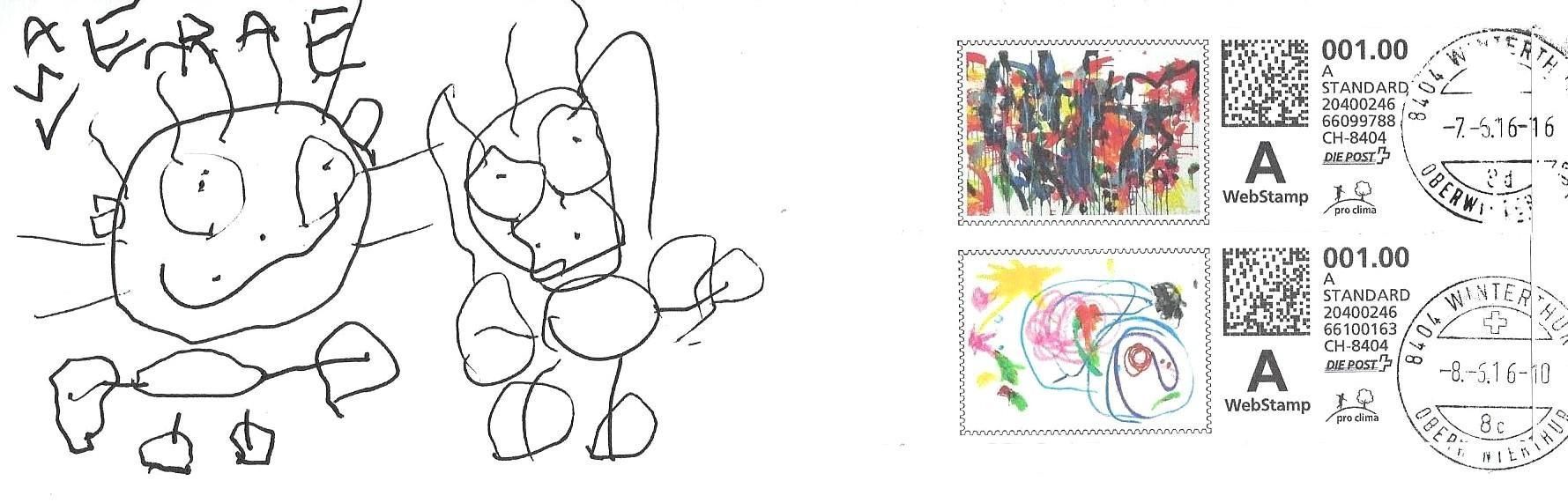 Aus einigen von Ihr gemachten Werken, wurden 10 Sujet ausgesucht, aus welchen Ihre ersten fünf Webstamp 1.00 Franken Briefmarken erstellt wurden.